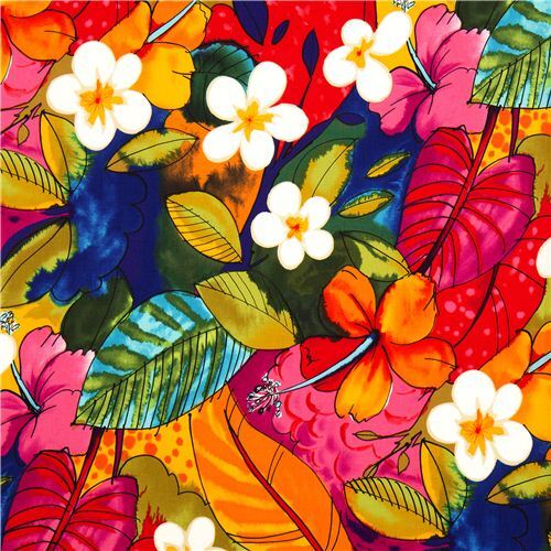 von Alexander HenryEin auffälliger, übergroßer, wunderschön gefärbter Druck exotischer tropischer Blumen und Blätter. Ideal für Taschen, Kleiderherstellung, Kissen und viele atemberaubende Sommerprojekte für Ihr Zuhause. Auf hochwertiger, glatter 100% Baumwolle, ein weiterer aufregender Druck von Alexander Henry.