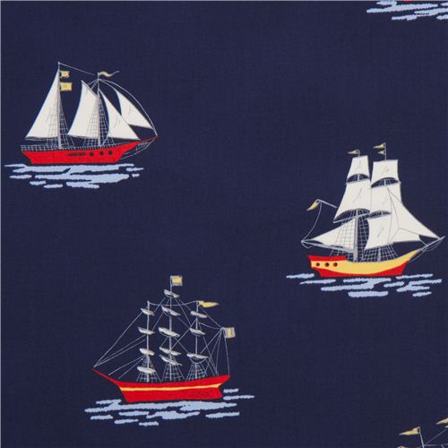 marineblauer maritimer Segelschiff Stoff Michael Miller Stoff
