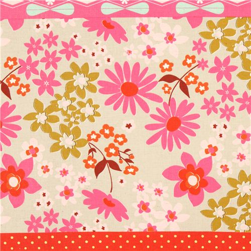 Canvas Blumen Stoff in Streifen rot von Kokka Japan 3