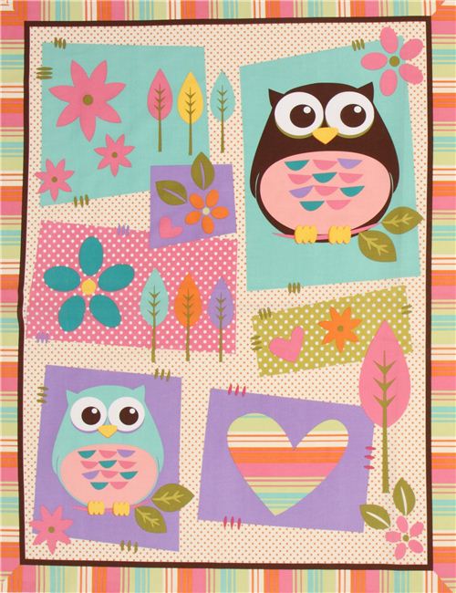 cremefarbener Eulen Paneel Tier Stoff What A Hoot Panel 3