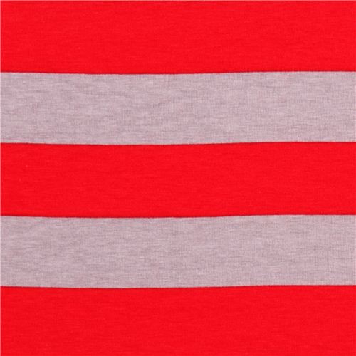 grauer Jersey Stoff mit roten Streifen
