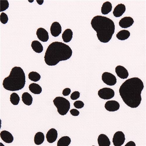 weißer Baumwoll-Stoff mit kleinen schwarzen Hundepfotenabdrücken