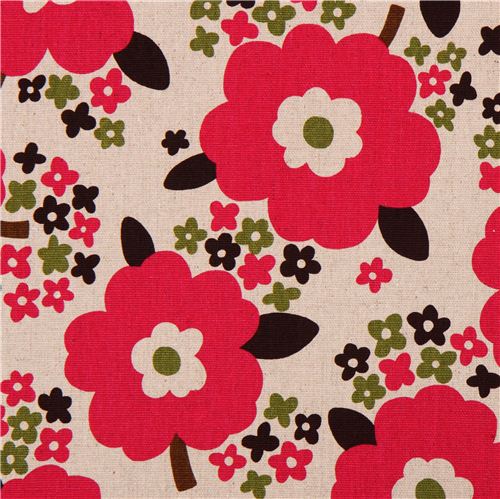 naturgrauer Blumen Oxford Stoff pink von Cosmo aus Japan Stoff