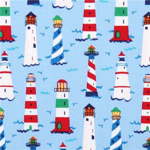 blauer Timeless Treasures Leuchtturm Maritim Stoff USA Stoff