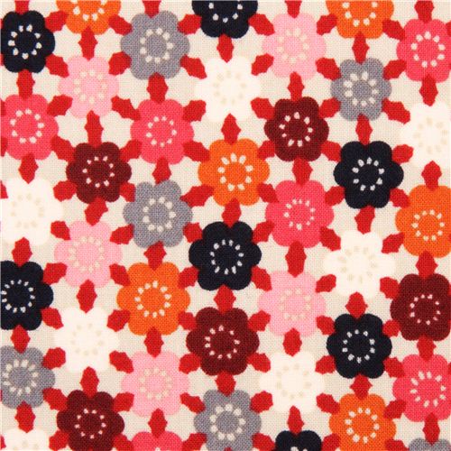 grauer Blumenstoff 'Chiyohana' mit kleinen bunten Blumen aus den USA