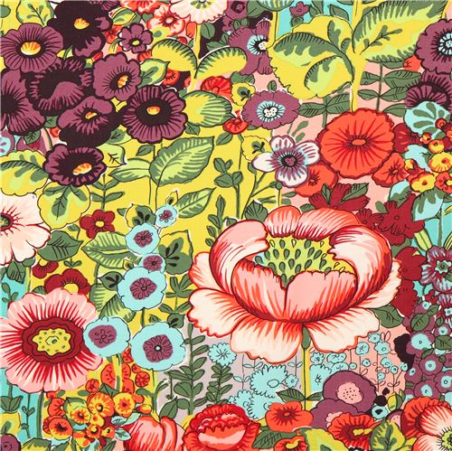 gelbgrüner Blumenstoff mit bunter Blumenwiese aus den USA