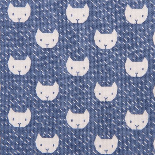 blauer Baumwoll-Stoff mit vielen kleinen eckigen Katzengesichtern und weißen Sprenkeln