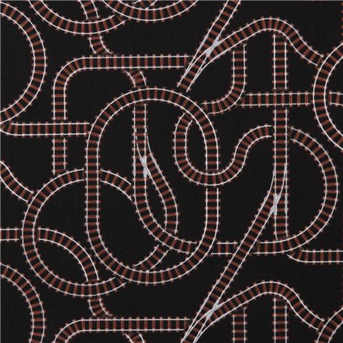 schwarzer Baumwoll-Stoff mit Eisenbahnschienen