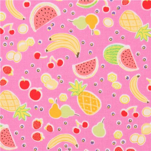 Pinker bunte Banane Ananas Frucht Michael Miller Stoff Yummy Fruits Stoff