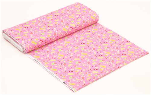 rosa Baumwollstoff mit süßen bunten Ananassen, Wassermelonen, Bananen etc.