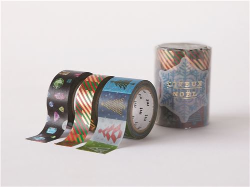 mt Washi Klebeband Dekoband Set Streifen Juwel Baum 3 Stück Merry Christmas