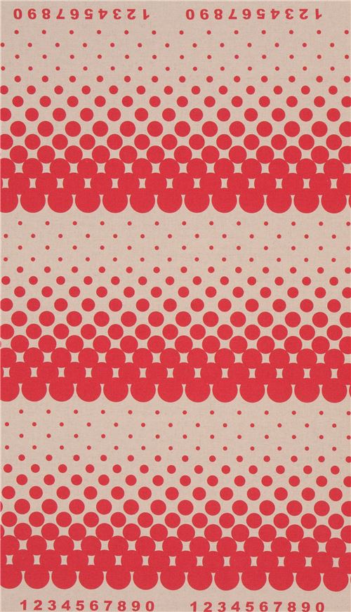 Naturfarbener Lecien Canvas Stoff roter Kreis Nummer Stoff