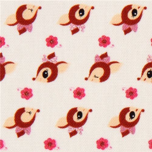 japanischer Oxfordstoff mit vielen süssen kleinen Rehköpfen und Blümchen