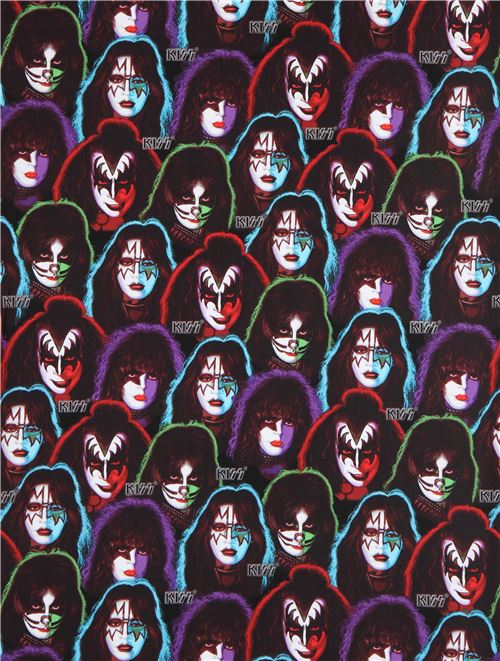 schwarzer Baumwollstoff mit den Gesichtern von Kiss Mitgliedern