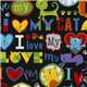 Stoff mit Katzen Schwarzes Baumwollstoff mit Katzen und buntem Text "I love my cat". Sehr hochwertiger Stoff in der typischen Qualität von Timeless Treasures.