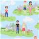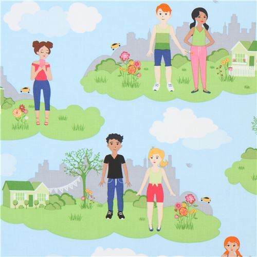 7 Hellblauer Stoff mit Menschen und Häusern von Michael Miller Fabric by Michael Miller - modeS4u