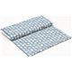Stoff mit Totenköpfen. Blaugrauer Baumwollstoff mit Totenköpfen, Mit goldenen Metallic-Verzierungen.