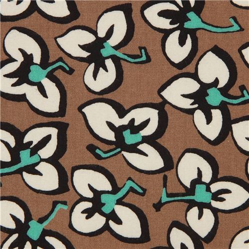 24 Brauner Leinen-Viskose-Stoff mit Blüten Fabric by Japanese Indie - modeS4u