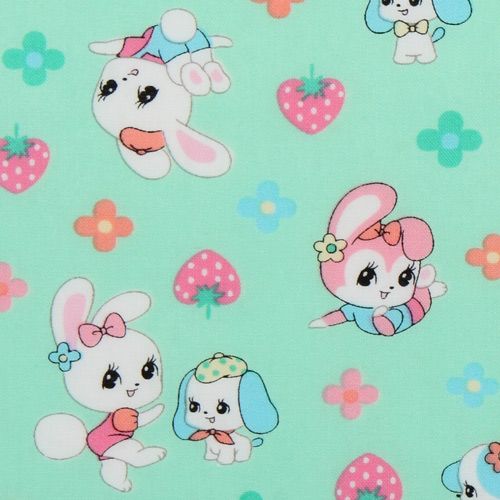 süsser Stoff mit Hasen, Hunde, Erdbeeren und Blumen aus Japan