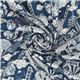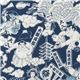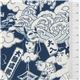 Dunkelblauer Stoff mit altweißen Sumoringer Kabuki Karpfen Masken von Cosmo Stoff
