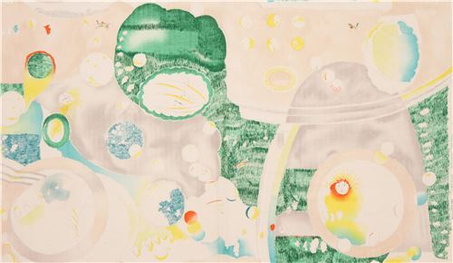 bunter doppelflor Stoff mit Kreisen, Wolken, vielen Formen