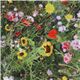 Leinenähnlicher Stoff mit Blumenwiese von Kawaii Fabric Weicher leinenähnlicher Stoff mit grünem Gras und kleinen Blumen in Gelb, Orange, Pink und Lila.