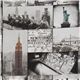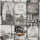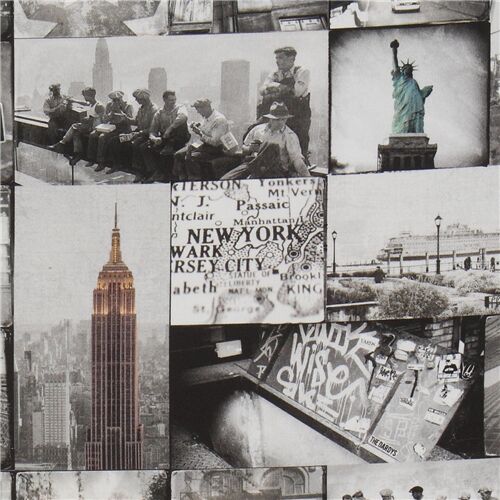 Leinenähnlicher Stoff mit New York und Freiheitsstatue von Kawaii Fabric Weicher leinenartiger Stoff mit Patchwork-Design mit Empire State Building, Freiheitsstatue, Taxis und Straßen.