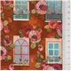 Fenster- und Blumenstoff brauner Stoff mit Mohnblumen, bunten Fenstern