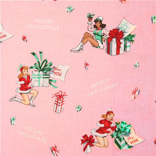 30 rosa Weihnachtsstoff mit Frauen und Geschenken Fabric by Alexander Henry - modeS4u