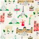 Cremefarbener Parisermotivstoff von Dear Stella hellcremefarbener Baumwollstoff mit Eiffelturm, Arc de Triomphe, Louvre usw.