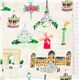 Dear Stella hellcremefarbener Stadtplanstoff mit Pariser Wahrzeichen Eiffelturm Stoff