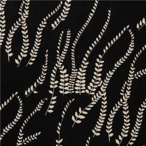 23,26,27 schwarzer Naturstoff mit cremefarbenen Blättern von Alexander Henry Fabric by Alexander Henry - modeS4u