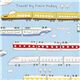 Blaue Züge Oxford Stoff von Kokka blauer Oxford-Baumwollstoff mit grünen, gelben, roten, blauen Zügen mit Worten wie "taking the train, to the next train station".