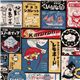 Mehrfarbige japanische Vintage Etiketten Süßigkeiten süßes Dessert Cosmo Stoff