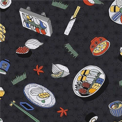 Schwarz Trans-Pacific Textiles rot blau weiß Sushi Japan Essen Stoff