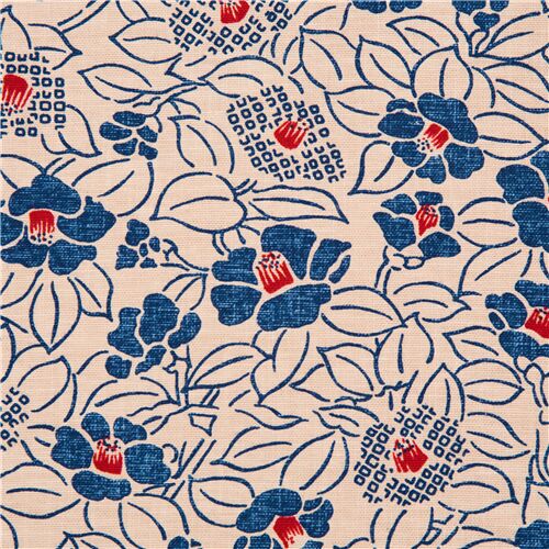39 Japan breiter Baumwollstoff mit blauen und roten Tsubaki-Kamelienblüten Fabric by Japanese Indie - modeS4u