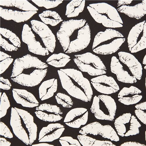 Timeless Treasures schwarzer Stoff mit Lippen Kuss leuchtet im Dunkeln Stoff