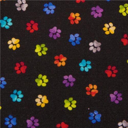 Miniatur-Tatzenabdrücke auf schwarzem Designerstoff aus reiner Baumwolle aus den USA Stoff
