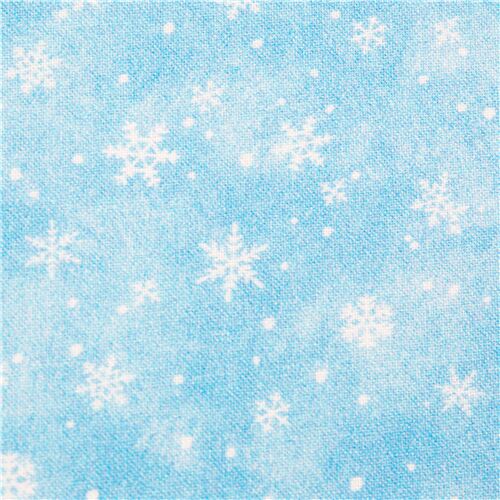 7 weiße Schneeflocken auf hellblauem Baumwollstoff mit Wintermotiv von Michael Miller Fabric by Michael Miller - modeS4u