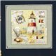 Marineblauer Stoff mit nautischem Baumwolleinsatz Leuchtturm Muscheln Ozean Stoff