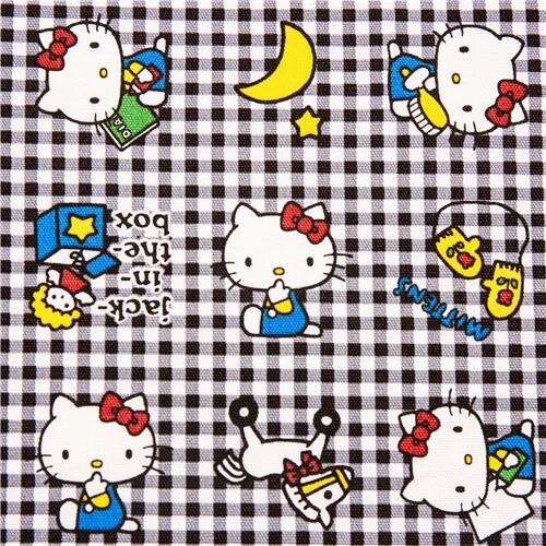 Hello Kitty Gingham-Oxford-Stoff schwarz Sanrio klassisches Karo Stoff