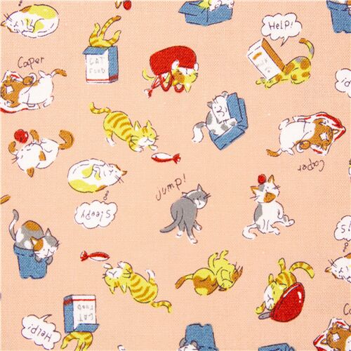 84,30 Pfirsich Japan Baumwollstoff Katzen spielen schlafend Fabric by Kokka - modeS4u