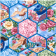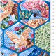 von Japanese Indie Japanischer Blumenaufnäher-Kran-Pfingstrosen-Druck. Wabenmuster mit Fächern, Kranichen, Pfingstrosen, japanischen Mustern und Motiven Hochwertiger Stoff aus 100 % Baumwolle aus den USA, Sykel Print Concepts