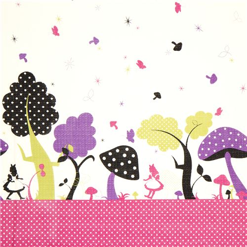 japanischer Stoff mit Längsmotiv mit Alice, Pilzen & Polka Dots