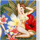 Beach Pin up Girls Fabric. Made in Japan blue cotton fabric with retro pin up girls in bathing suits, palms, sun and flowers very high quality fabric, typical great Alexander Henry quality