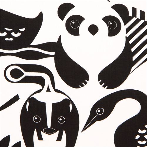 white cotton fabric with panda bear, zebra, swan, fish, skunk etc.