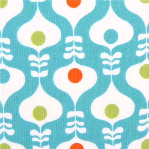 turquoise corduroy cotton fabric with pretty onion ornaments