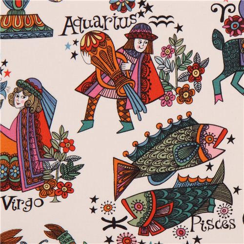 off-white cotton fabric with all signs of the zodiac such as Taurus, Gemini, Scorpio etc.