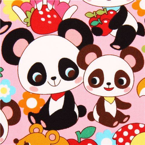 pink kawaii panda bear rabbit oxford fabric Cosmo Japan Fabric