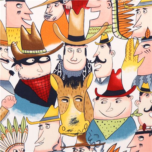 retro fabric from the USA with cowboys, Indians, horses, bandits etc.